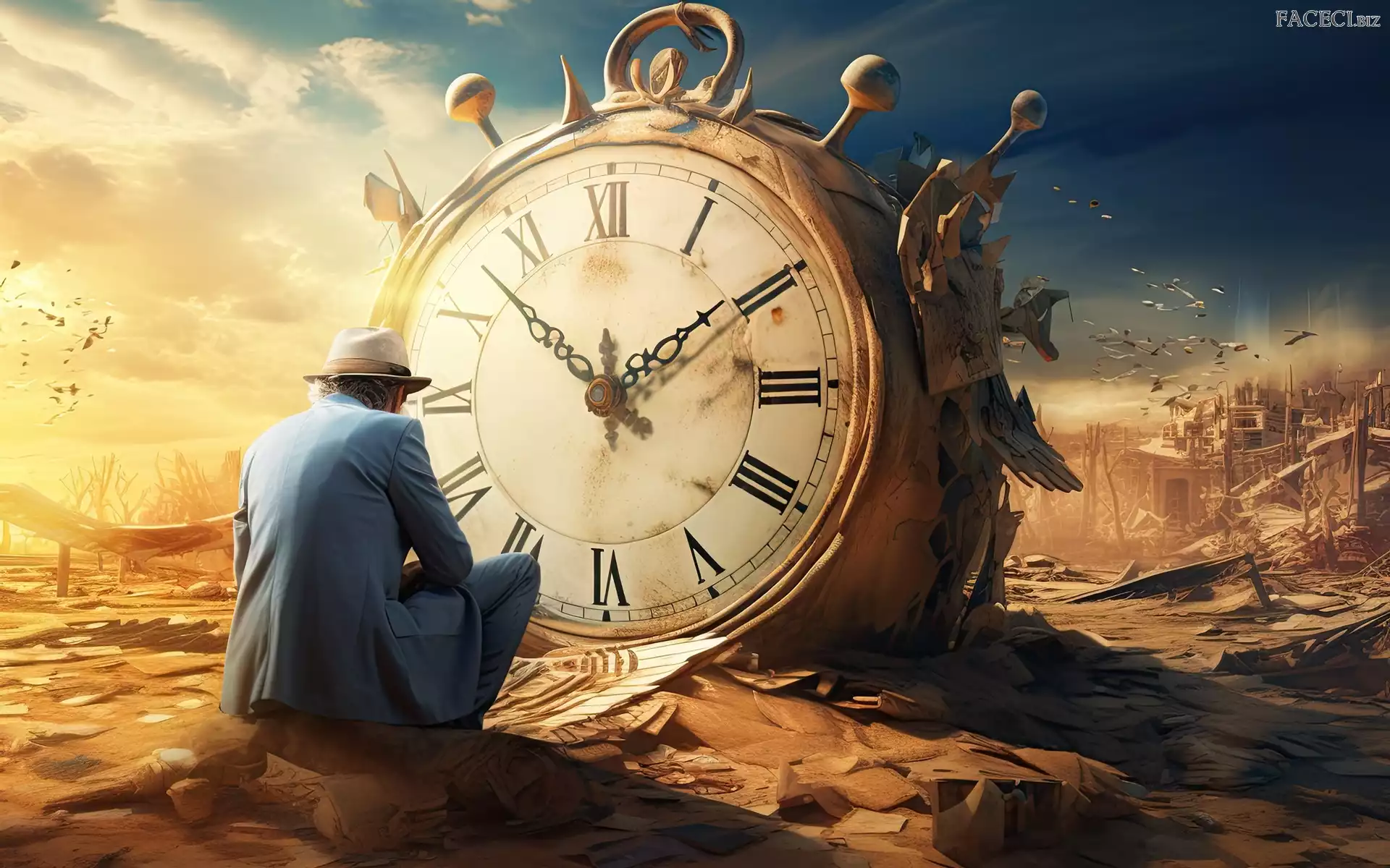 Grafika, Zegar, Ruiny, Mężczyzna - faceci.biz